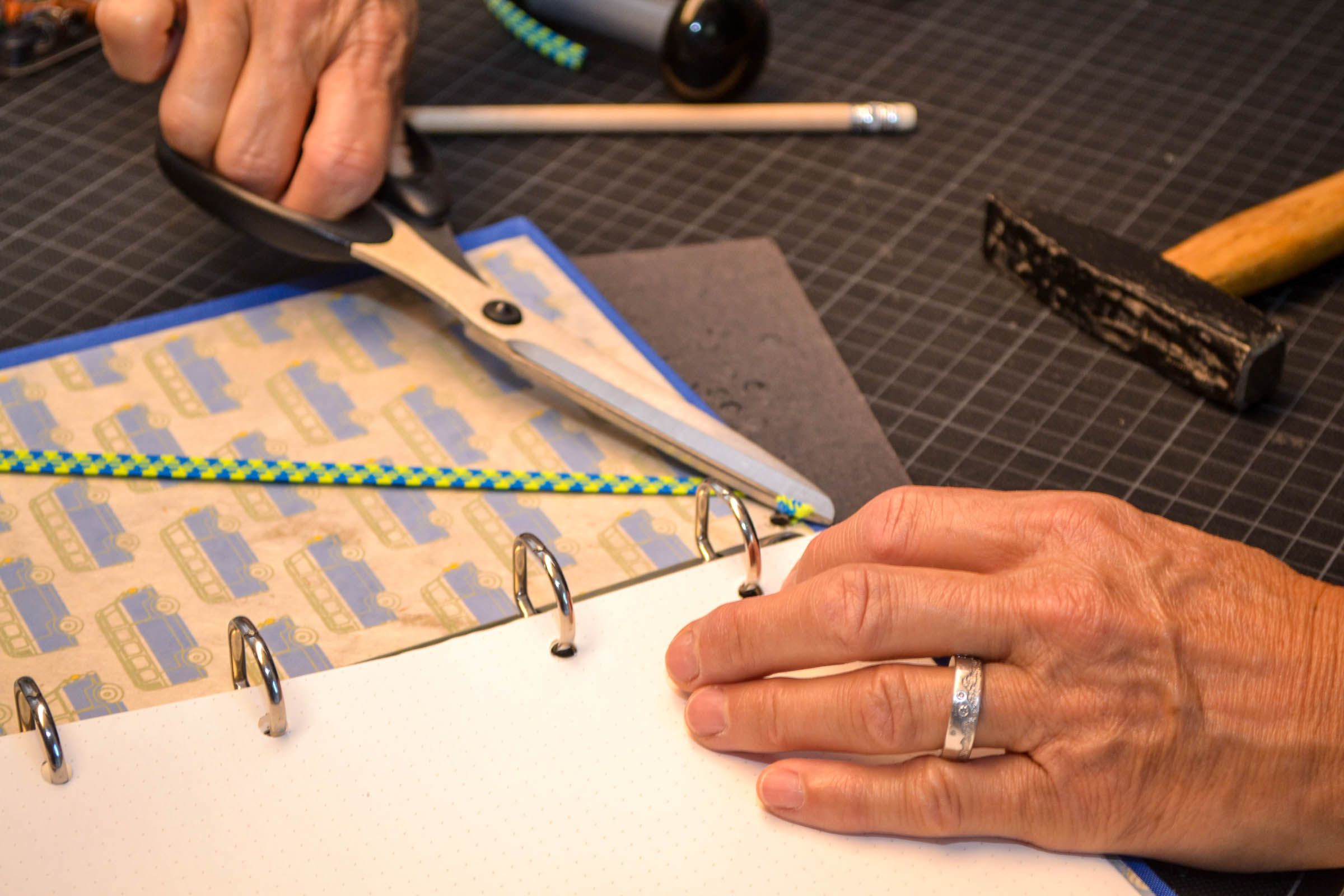 In meinem kleinen Reich gestalte ich Notizbücher, Ordner, Mappen, Hüllen für Notizblöcke usw.